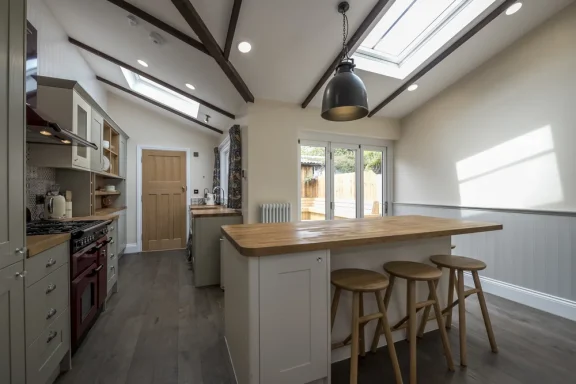 This was an excellent opportunity to undertake a comprehensive renovation of a Grade II listed cottage in Woolton, formerly owned by John Lennon’s family. The project encompasses a rear extension, the conversion of the garage into a music room, and a complete refurbishment of the house and garden. Additionally, a vaulted ceiling was introduced to the upper level, complemented by the installation of traditional timber beams to enhance the cottage's character.